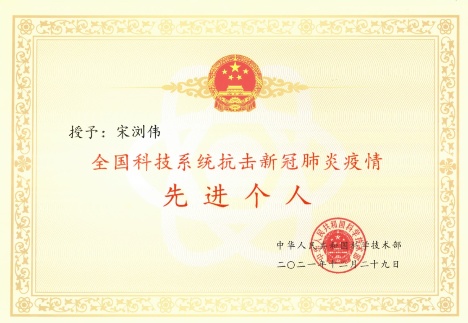 宋瀏偉,中共黨員,安徽六安市舒城縣人。2004年畢業(yè)于舒城中學,同年考入廈門大學,系廈門大學2015屆本碩博連讀研究生,廈門萬泰凱瑞生物技術(shù)有限公司研發(fā)總監(jiān)。2022年獲全國科技系統(tǒng)抗擊新冠肺炎疫情先進個人表彰。